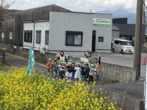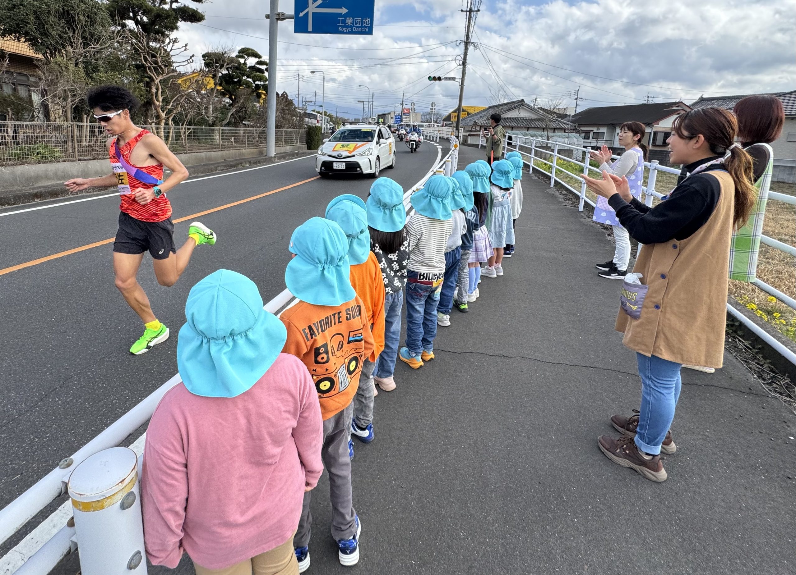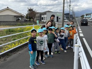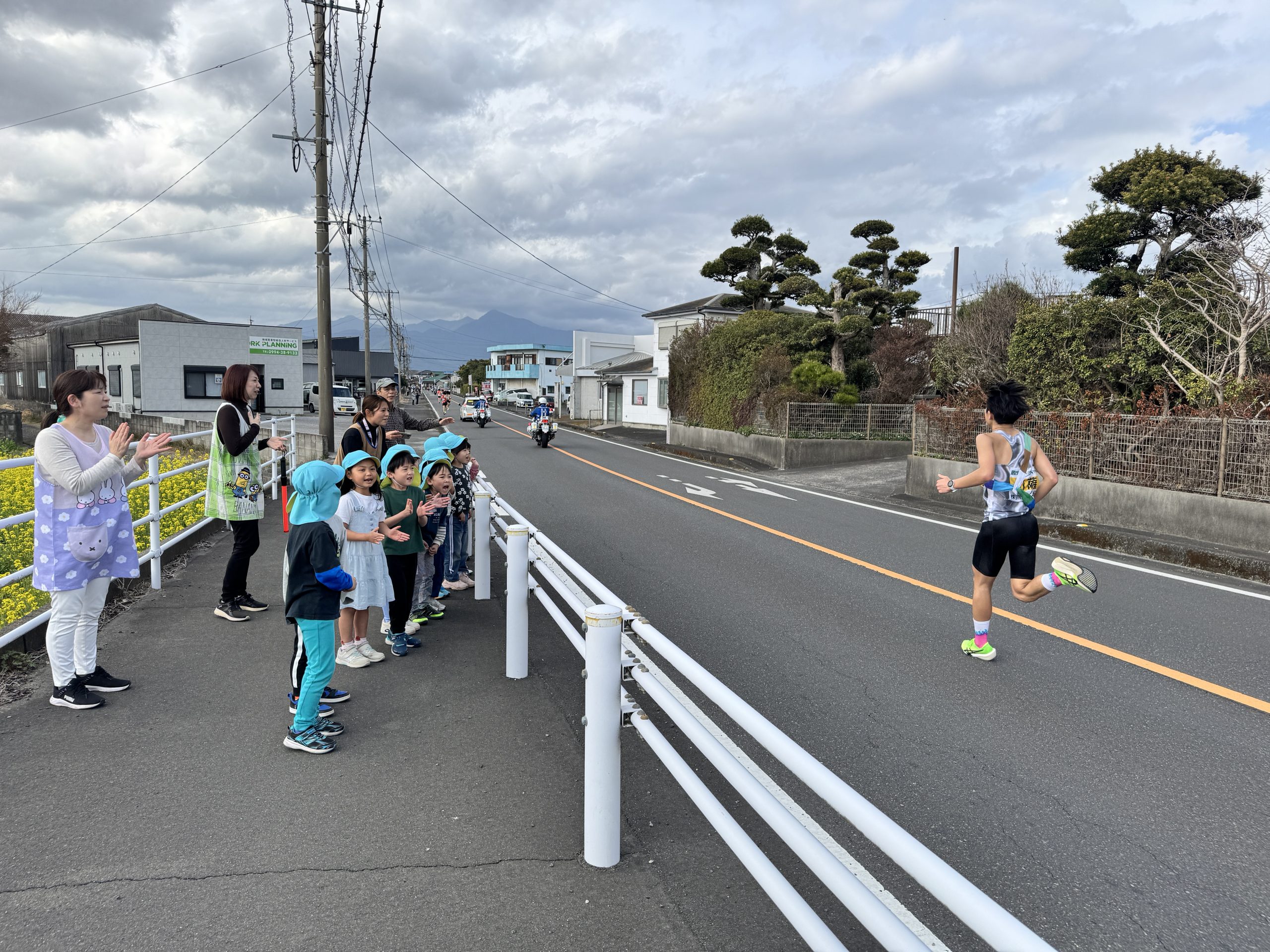 春の訪れを告げる県下一周駅伝が保育園前を通過しました。
