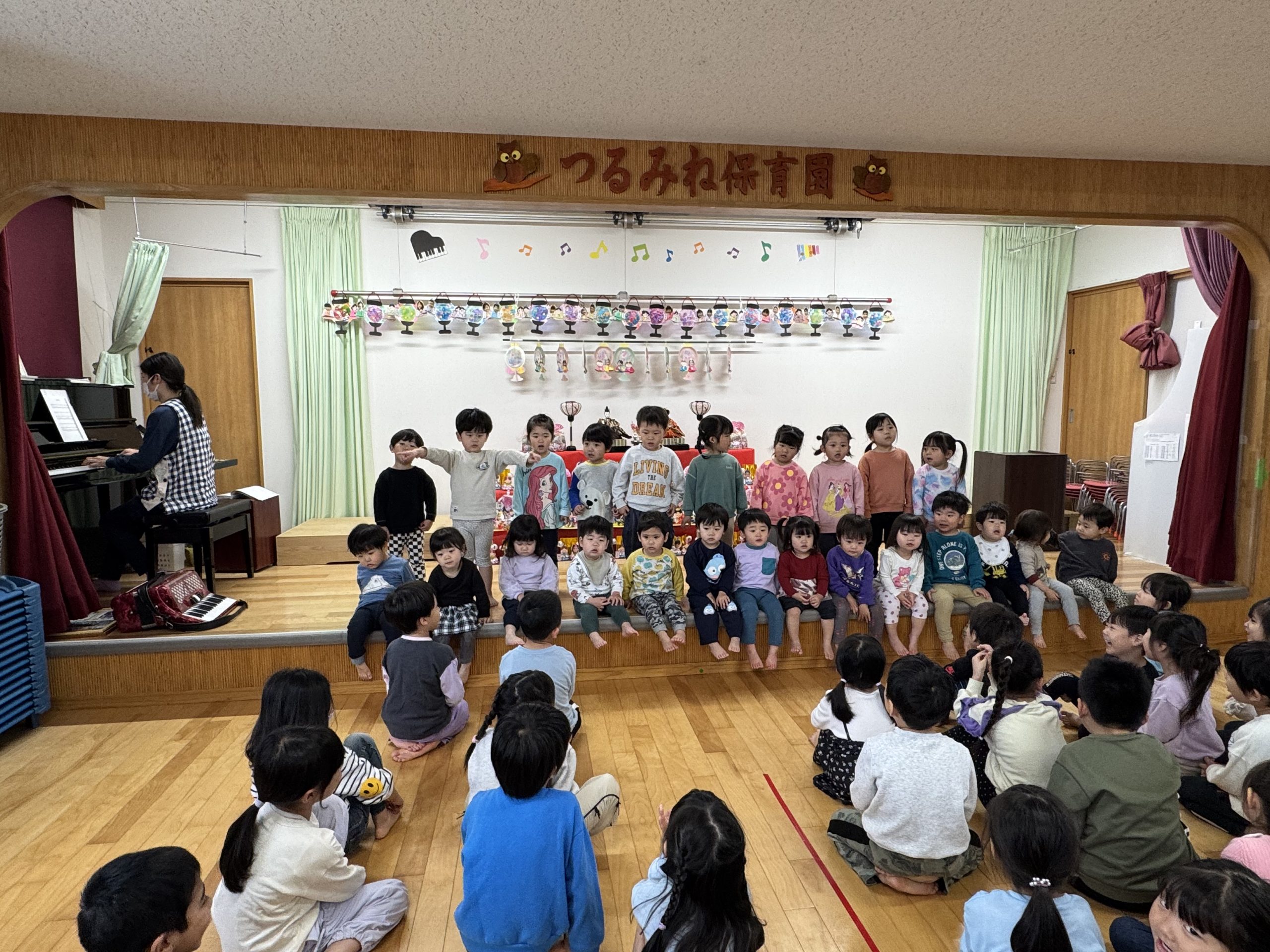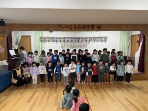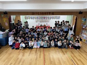 3月3日、全園児で、ひなまつり集会を楽しみました。初代園長の誕生日だったこともあり、創立記念日としており、53年の歴史も伝える機会になりました。